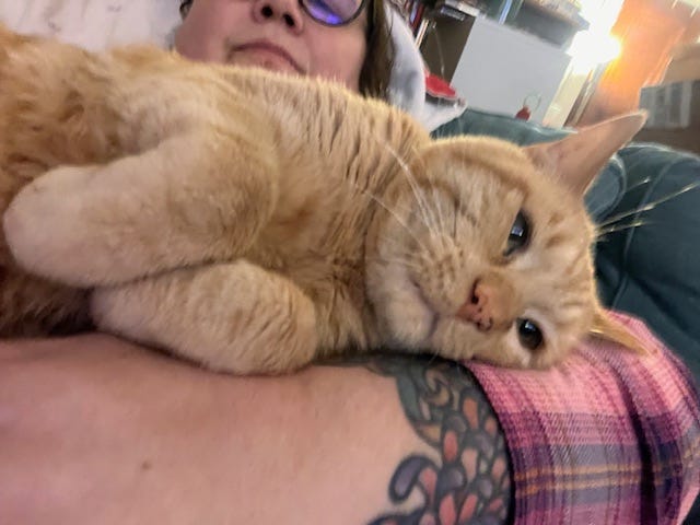 Today I slept until a few minutes before noon. I drank my coffee on the couch with Woody before the sunbeam hit his chair and he followed it, just like he does every day.